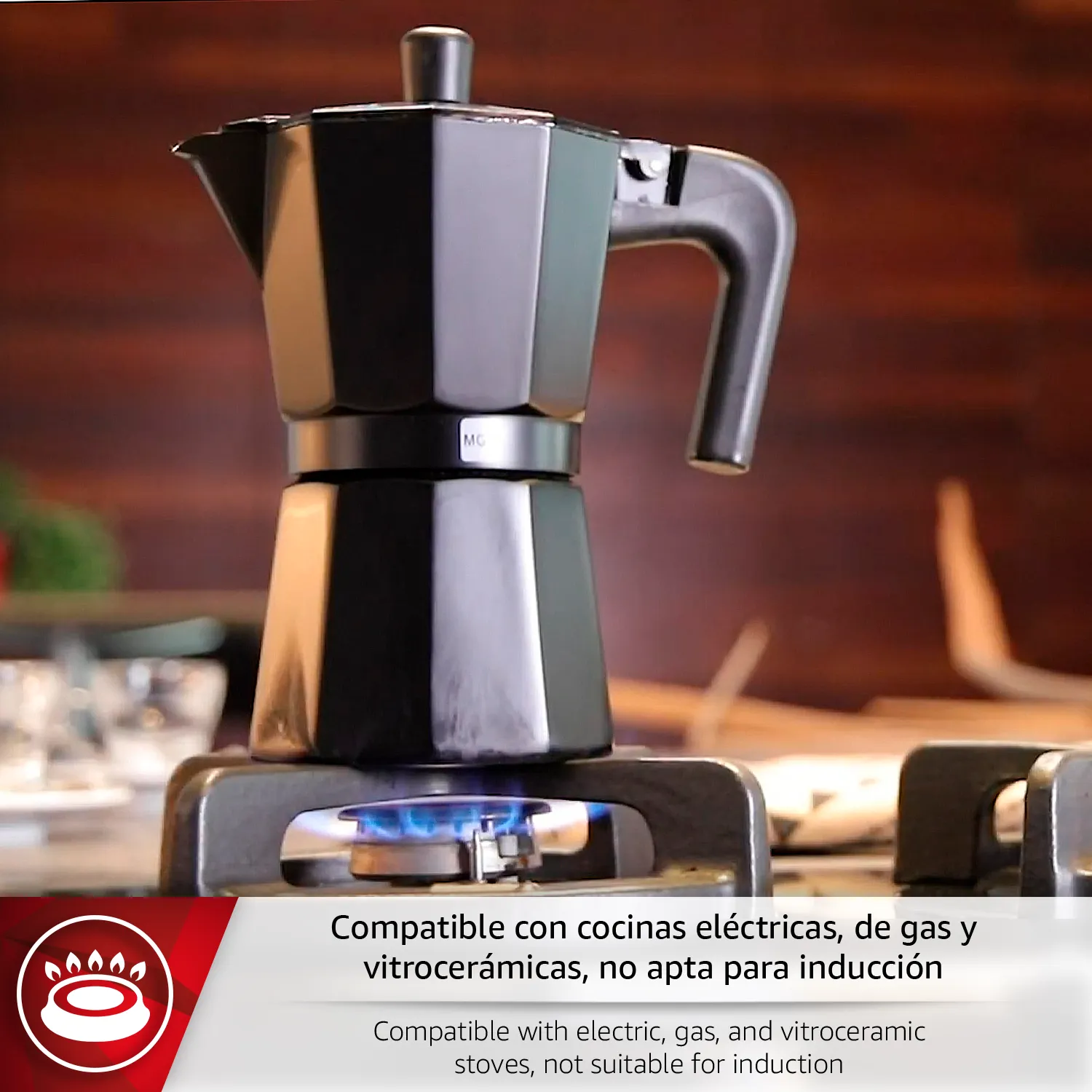 Magefesa Colombia Noir – Cafetera Italiana Negra, Incluye 6 Cucharas Moka, Aluminio Extra Grueso, Todo Tipo de Cocinas, EXCEPTO INDUCCIÓN