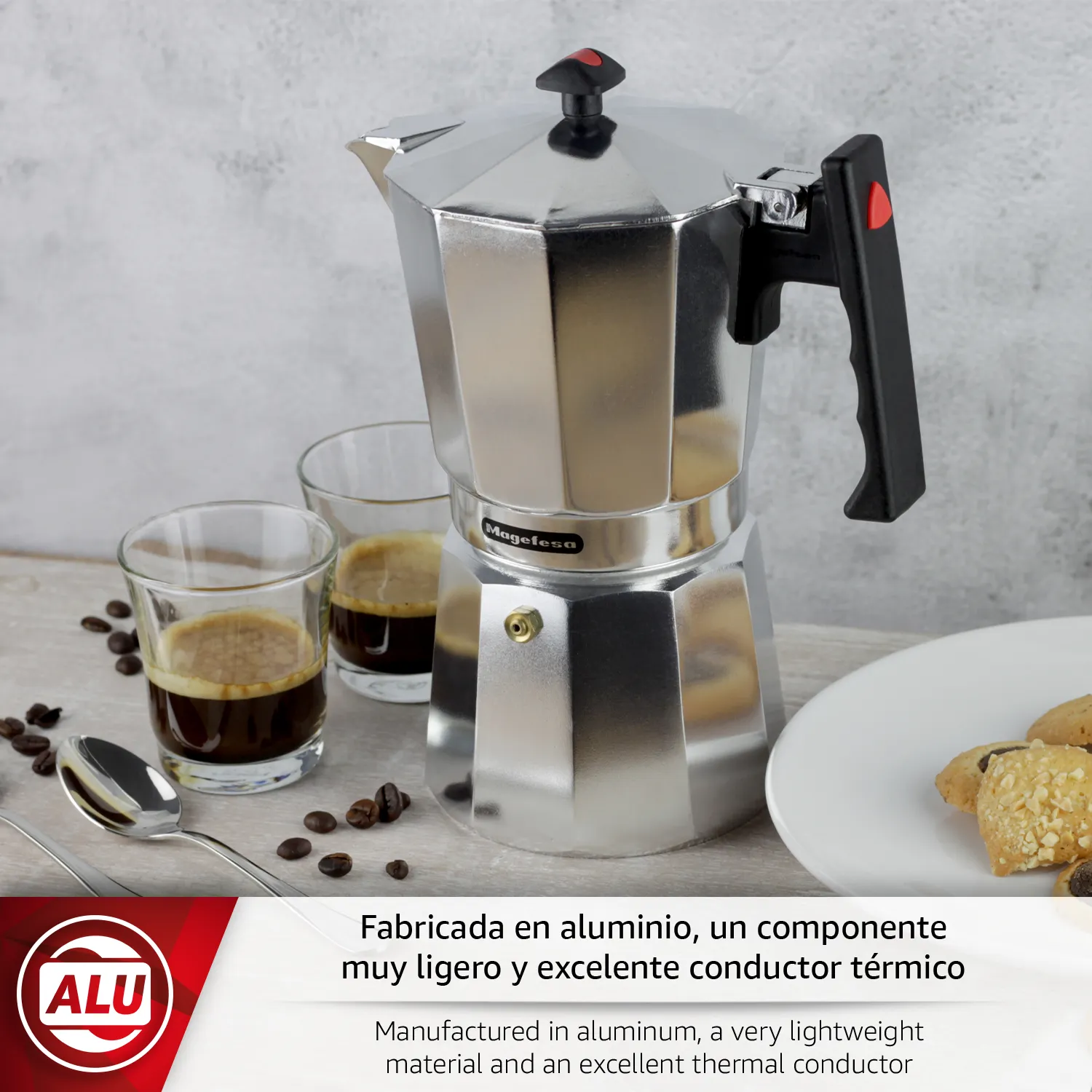 Magefesa Colombia – Cafetera Italiana, Aluminio Extra Grueso, Todo Tipo de Cocinas, NO APTA PARA LAVAVAJILLAS E INDUCCIÓN