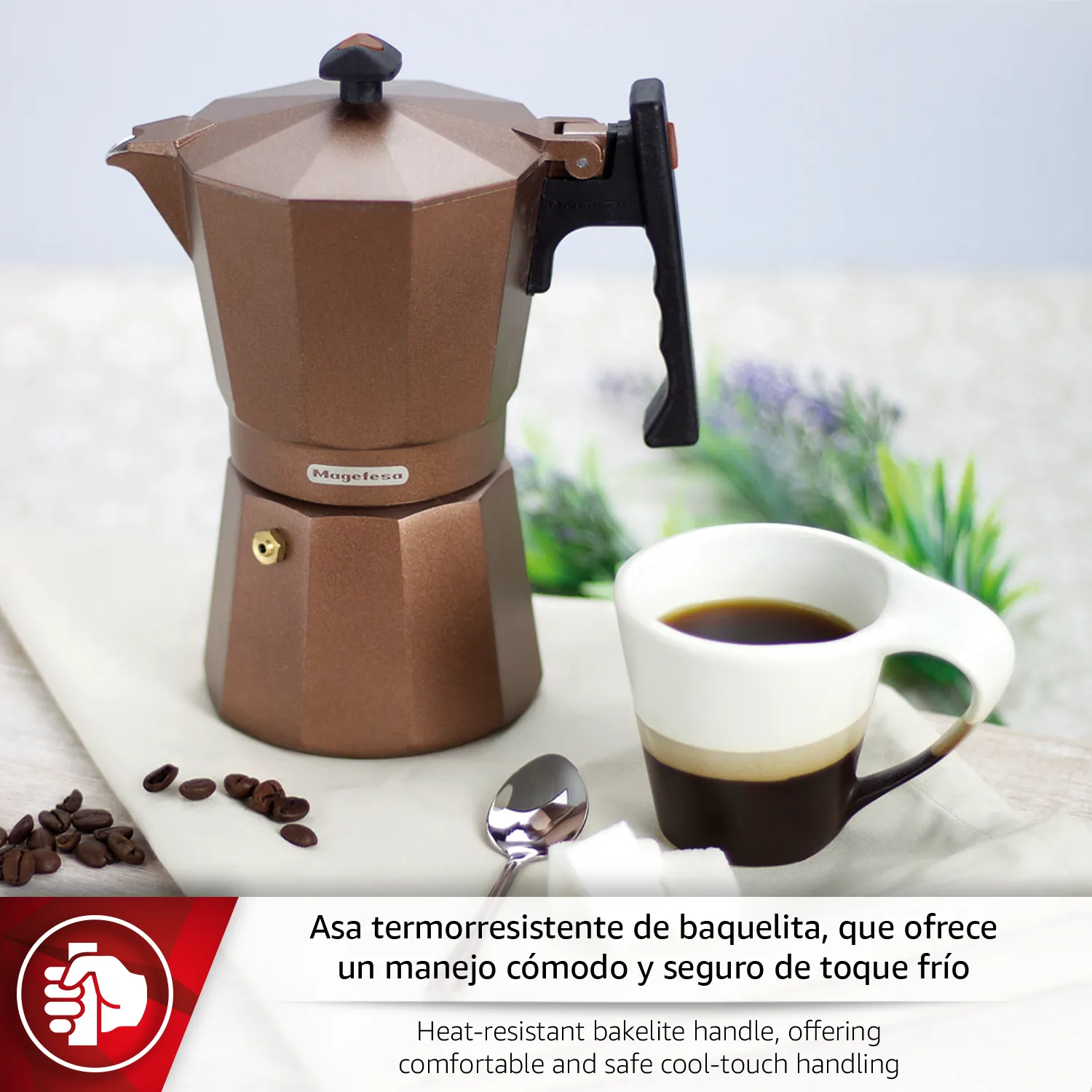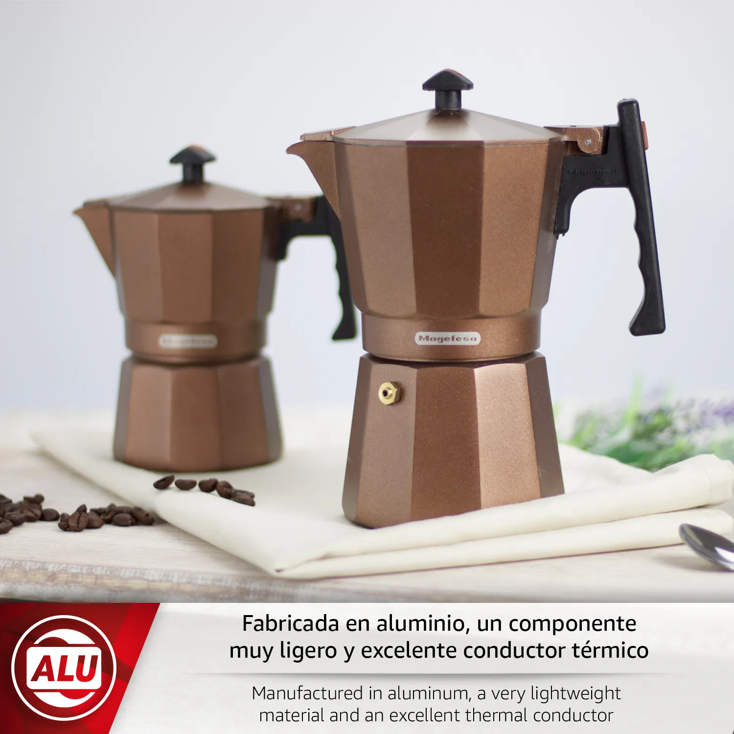 Magefesa Jamaica – Cafetera Italiana de Aluminio Extra Grueso, Para Todo Tipo de Cocinas, Inducción, Café, Asa Termo-Resistente, Ecológica