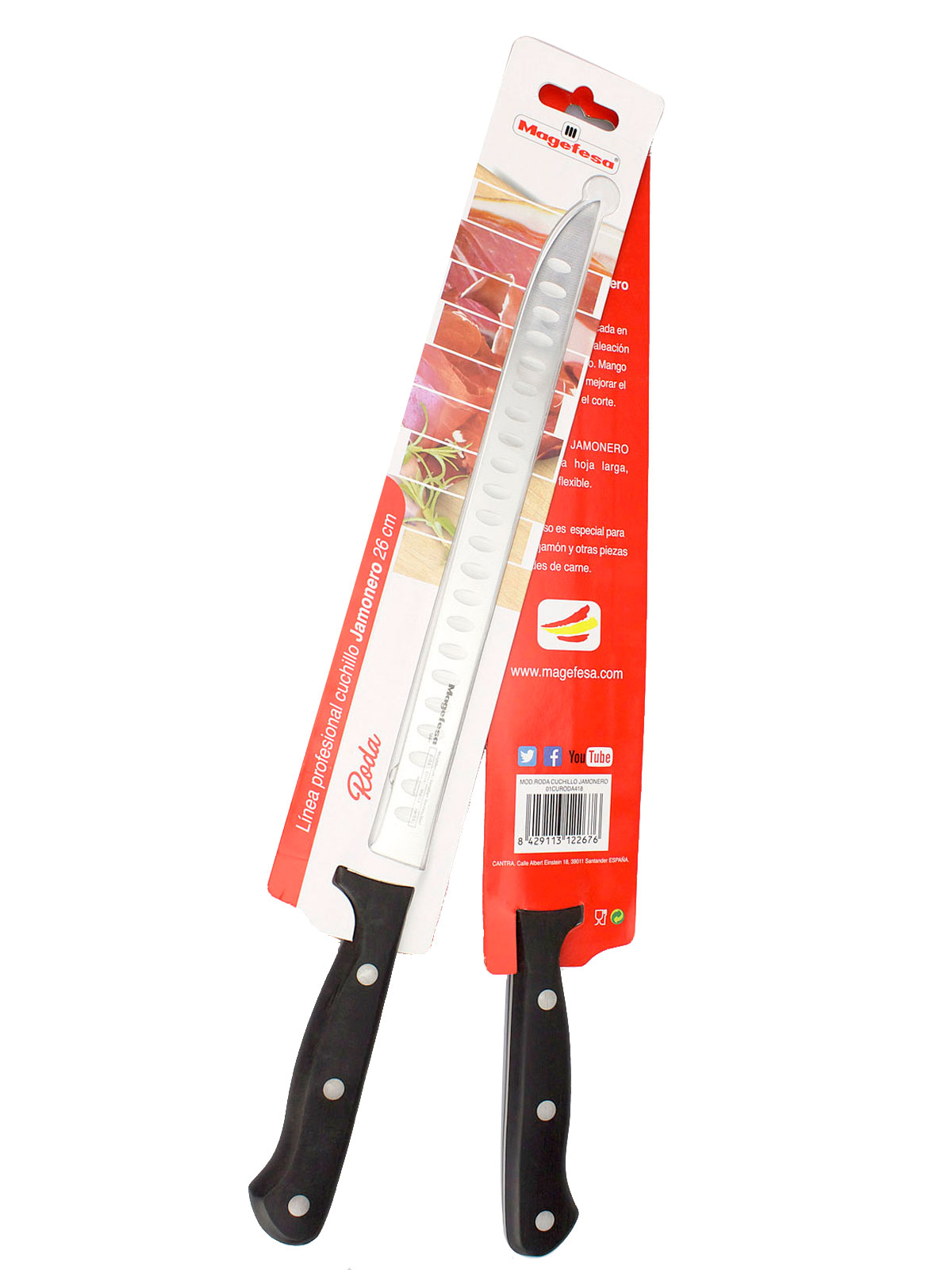 MAGEFESA ® Roda cuchillo Jamonero para la cocina, fabricados en acero inoxidable Molybdenium-Vanadium, perfecto para cortar finas lonchas de jamón, profesional, fácil limpieza