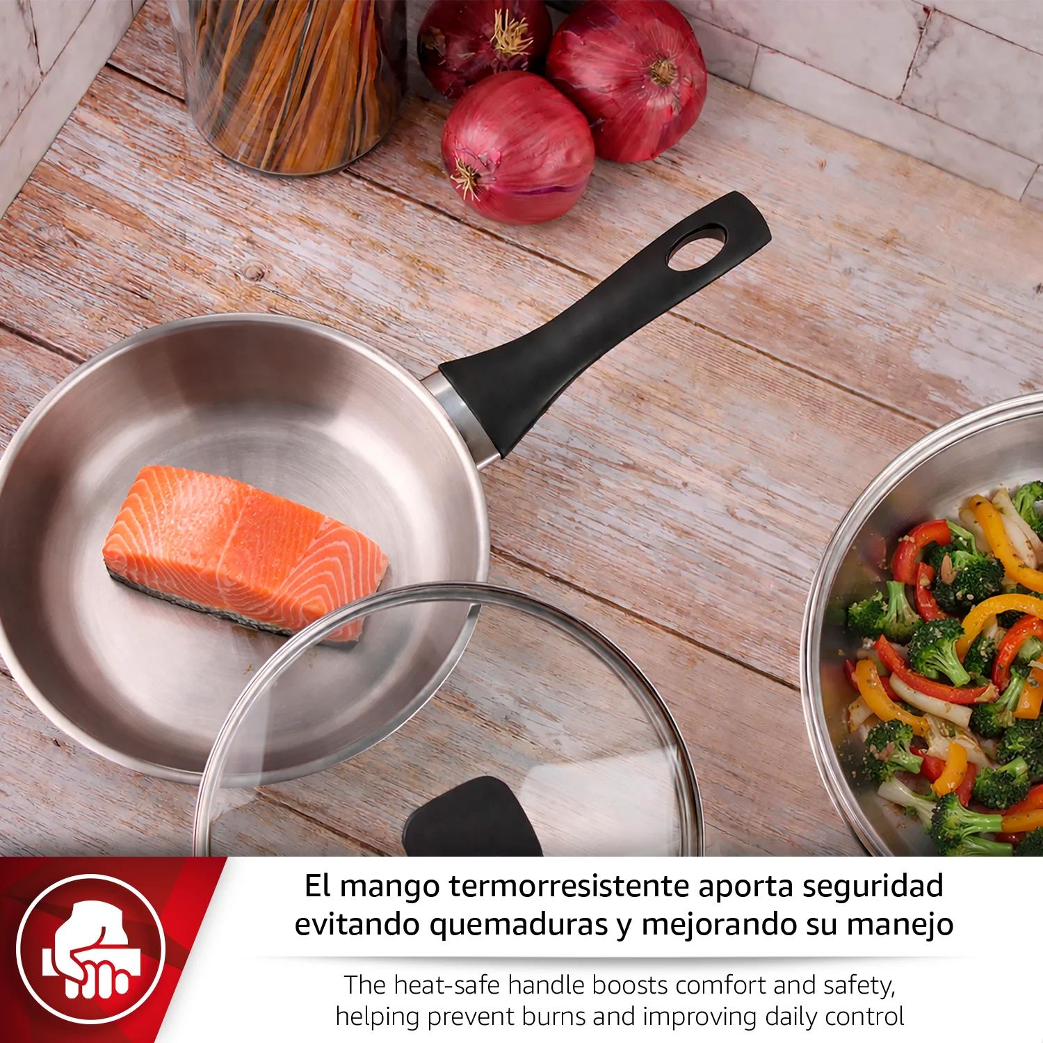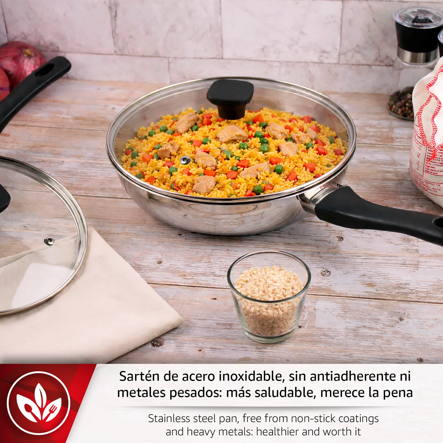 COCINA SALUDABLE: Cocina de forma más saludable con un producto sin antiadherente y libre de BPA, libre de PTFE y metales pesados, pensado para cuidar de ti y de los tuyos. Prepara tus recetas favoritas con la tranquilidad de utilizar materiales seguros y de alta calidad.