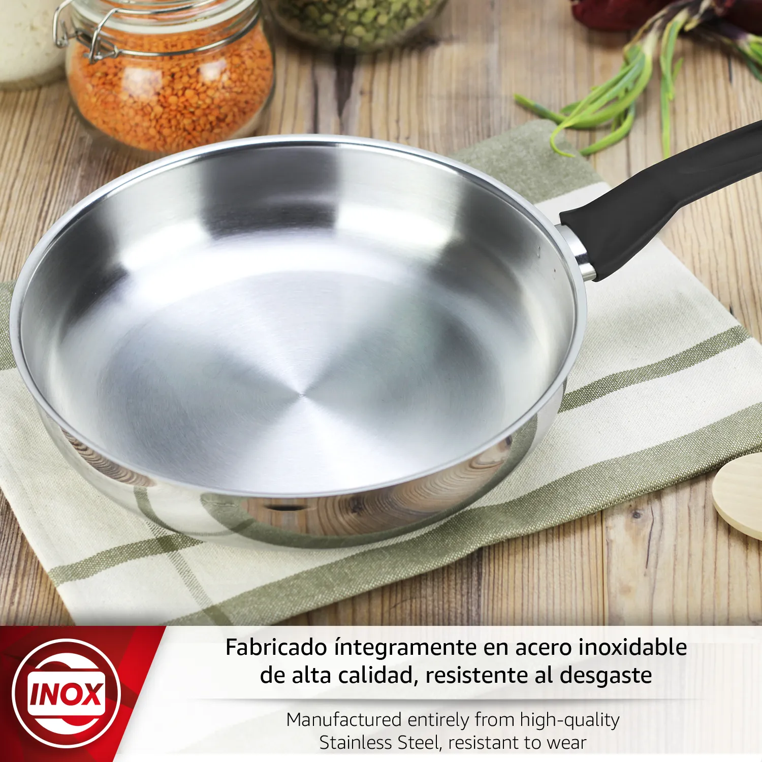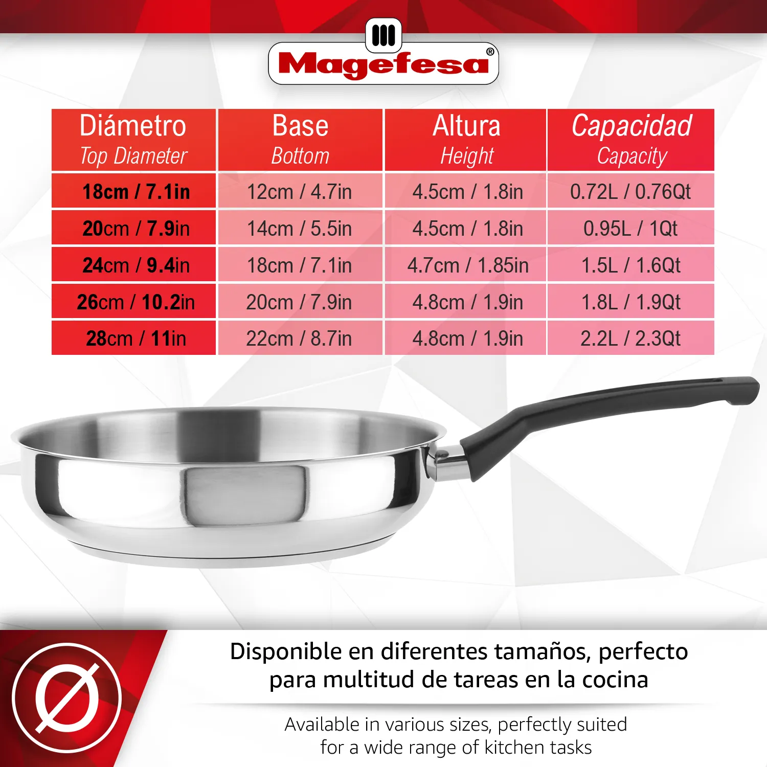 Magefesa Essencial Inox – Set de Sartenes Plateadas 18 + 24 + 26cm, Acero Inoxidable, Sin Recubrimiento ni Antiadherente, Ecológicas, Inducción