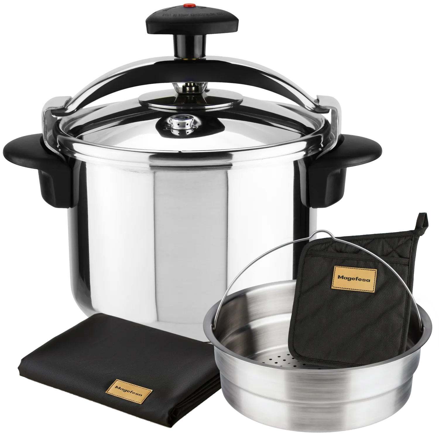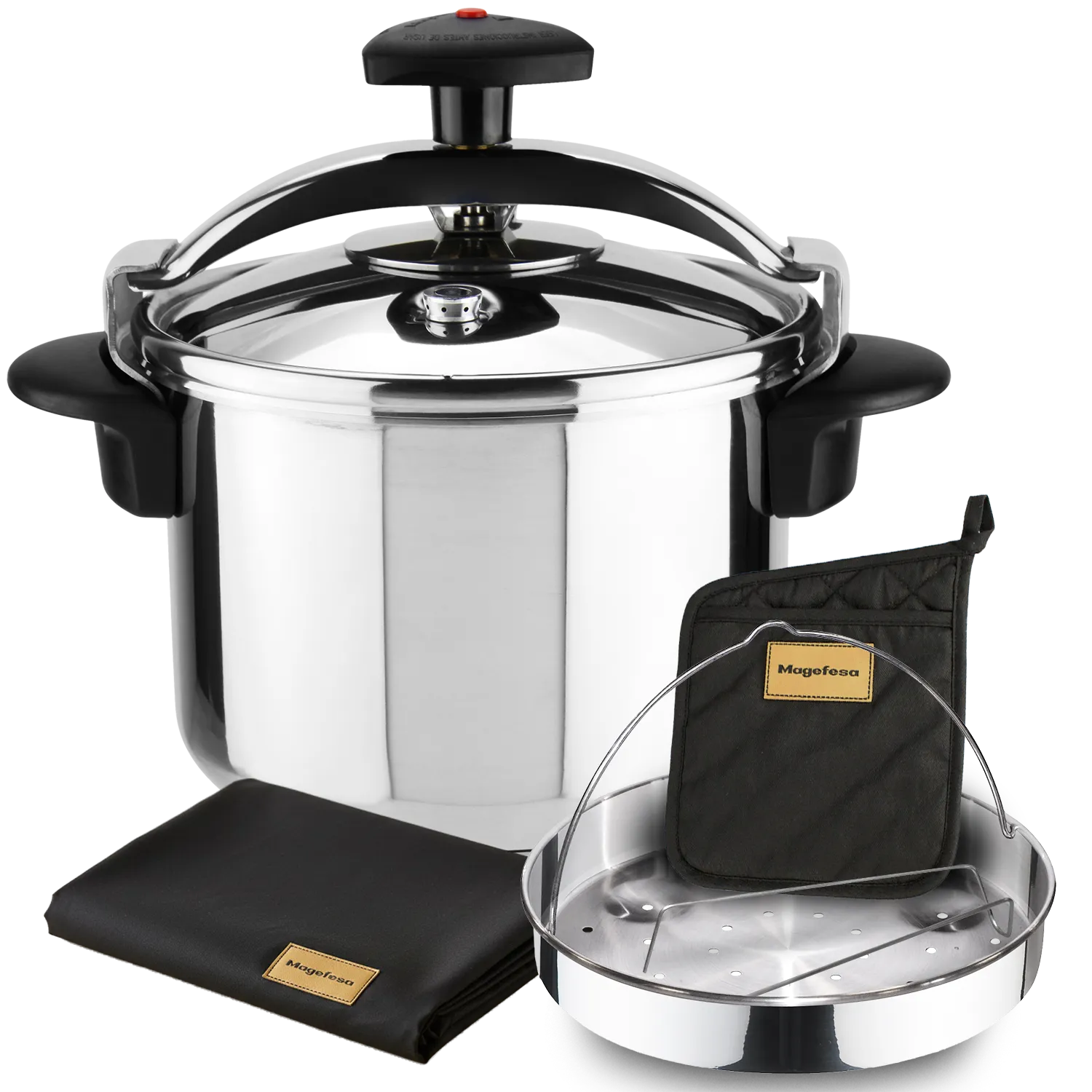 Magefesa Star Recta – Edición Especial Pack Olla Express Tradicional 6L+ Cestillo + Paño de Cocina + Toma Ollas, Acero Inoxidable 18/10, Inducción
