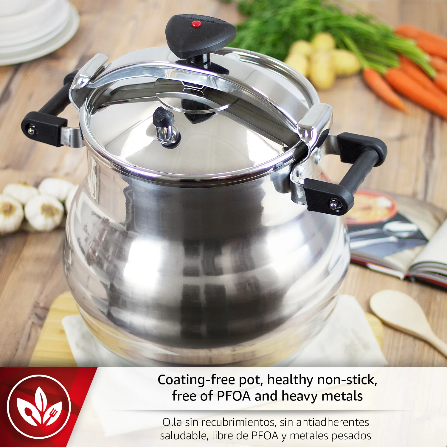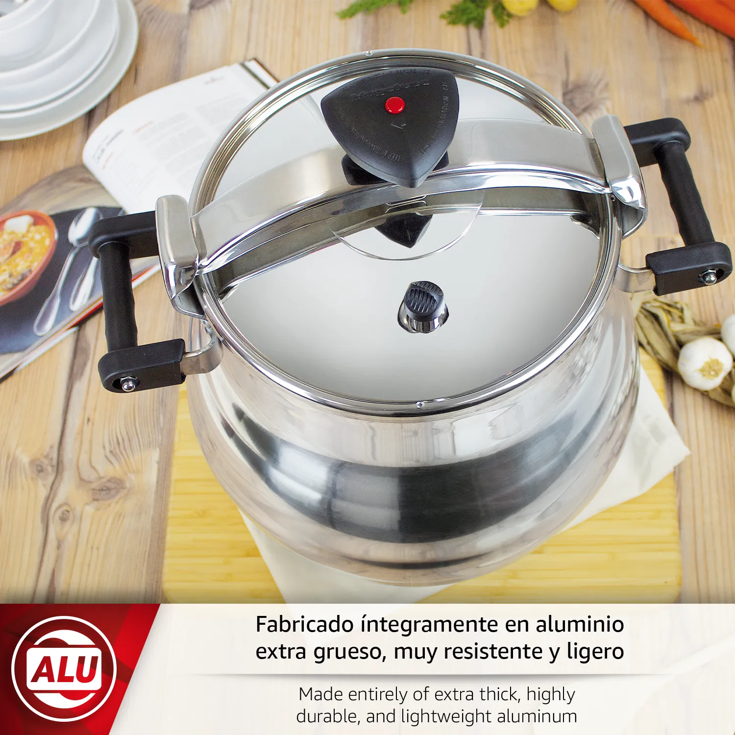 Fácil uso: La olla a presión tradicional Magefesa Alustar cuenta con un sistema de cierre progresivo mediante pomo rotatorio, garantiza un manejo seguro. Tapa consistente sella eficazmente sabores y nutrientes. Reduce tiempo de cocción hasta en un 70% ahorrando energía.