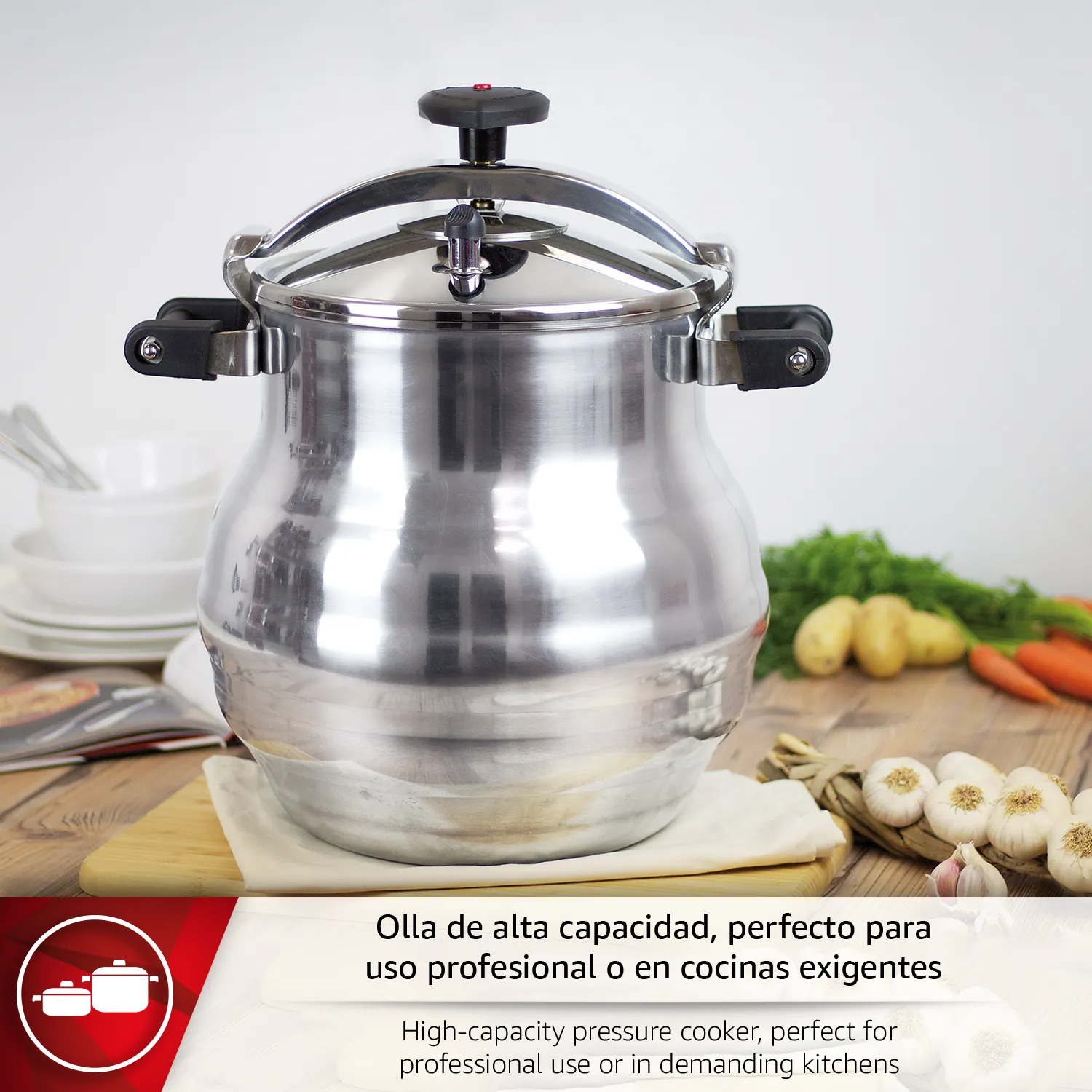 Magefesa Alustar – Olla Express Profesional de 22 Litros, Fabricada en Aluminio, Apta para Gas, Vitrocerámica y Eléctrica, 3 Sistemas de Seguridad