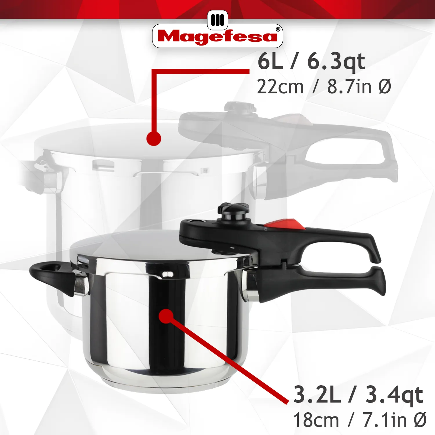 MAGEFESA ® Practika batería de cocina, 7 piezas, fabricada en Acero Inoxidable, su fondo difusor garantiza la distribución de calor, INDUCCIÓN, fácil Limpieza y Apta lavavajillas