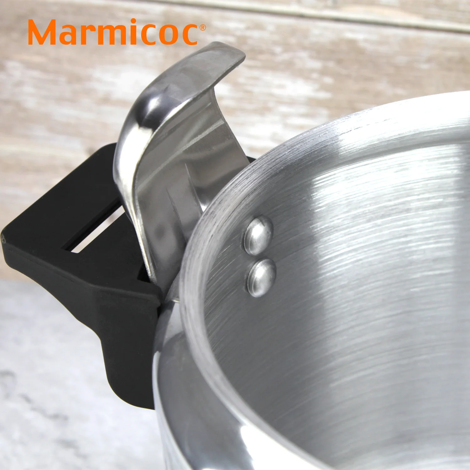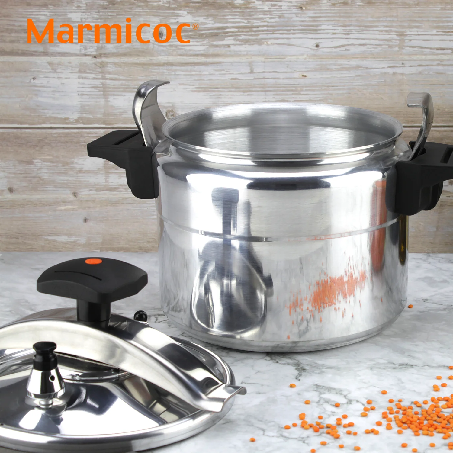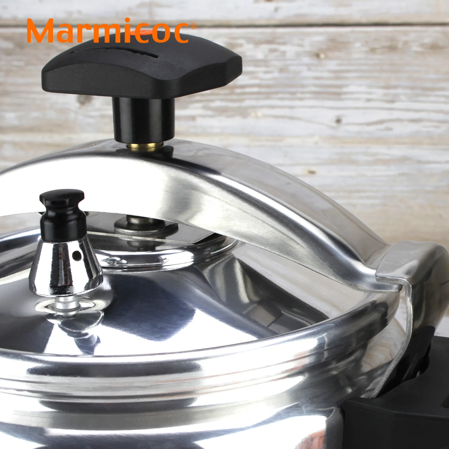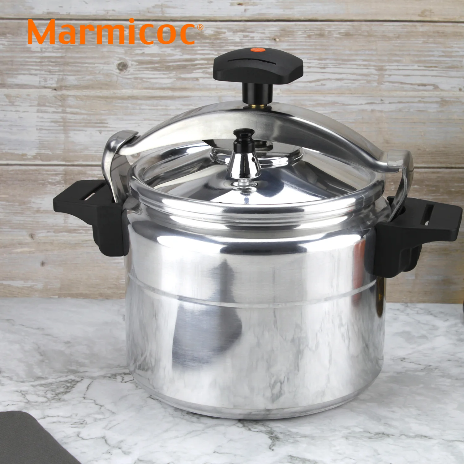 OLLA A PRESIÓN MARMICOC ALUMAX con cuerpo de ALUMINIO EXTRA GRUESO que distribuye el calor de forma rápida y uniforme para resultados sabrosos en menos tiempo. Incorpora puente de acero inoxidable y 3 SISTEMAS DE SEGURIDAD para cocinar con total confianza. Reduce hasta un 60% el consumo energético y acorta la cocción a 1/3. Compatible con gas, eléctrica y vitrocerámica; ideal para cocina tradicional (NO ES APTA EN INDUCCIÓN).