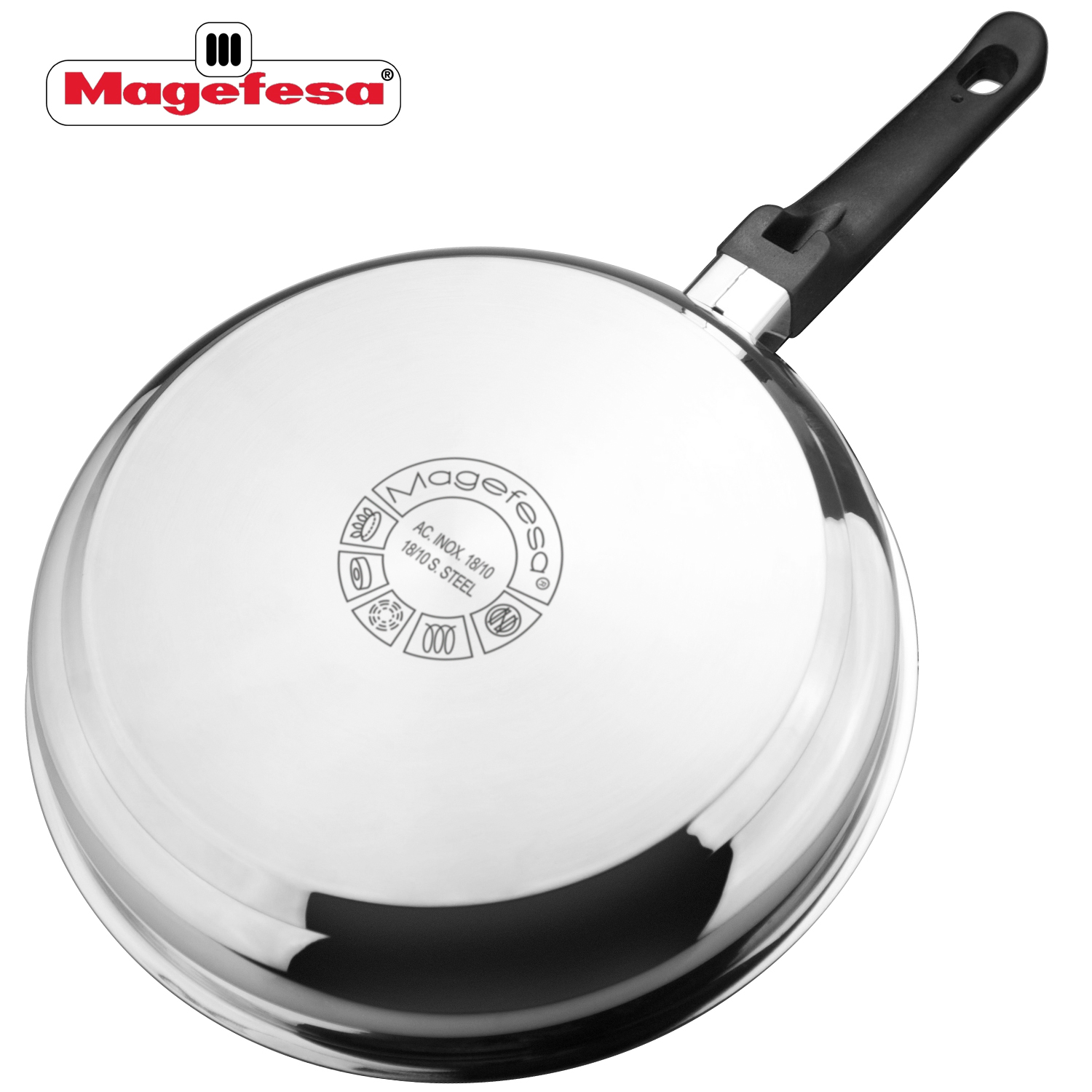 Magefesa – Pack Sartén de 22 cm SABOR + Sartén de 28 cm COMTE, Acero Inoxidable, Aptas para Todas las Cocinas, Inducción, Antiadherente de Triple Capa