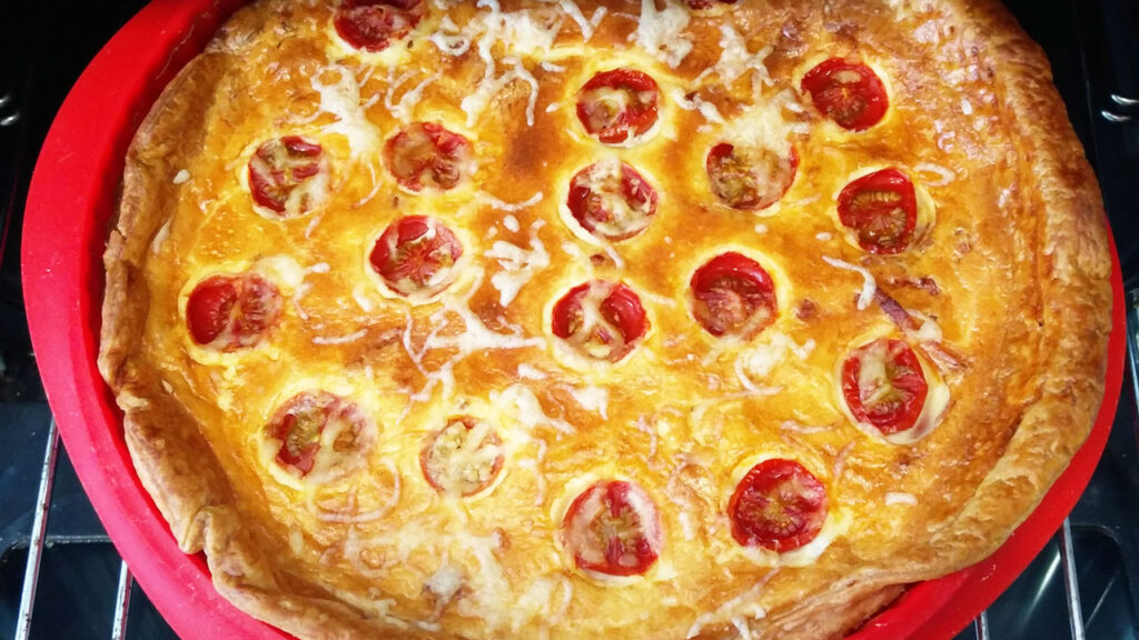 Hemos preparado una “Quiche Lorraine” de queso, bacon y tomatitos Cherry para chuparse los dedos.