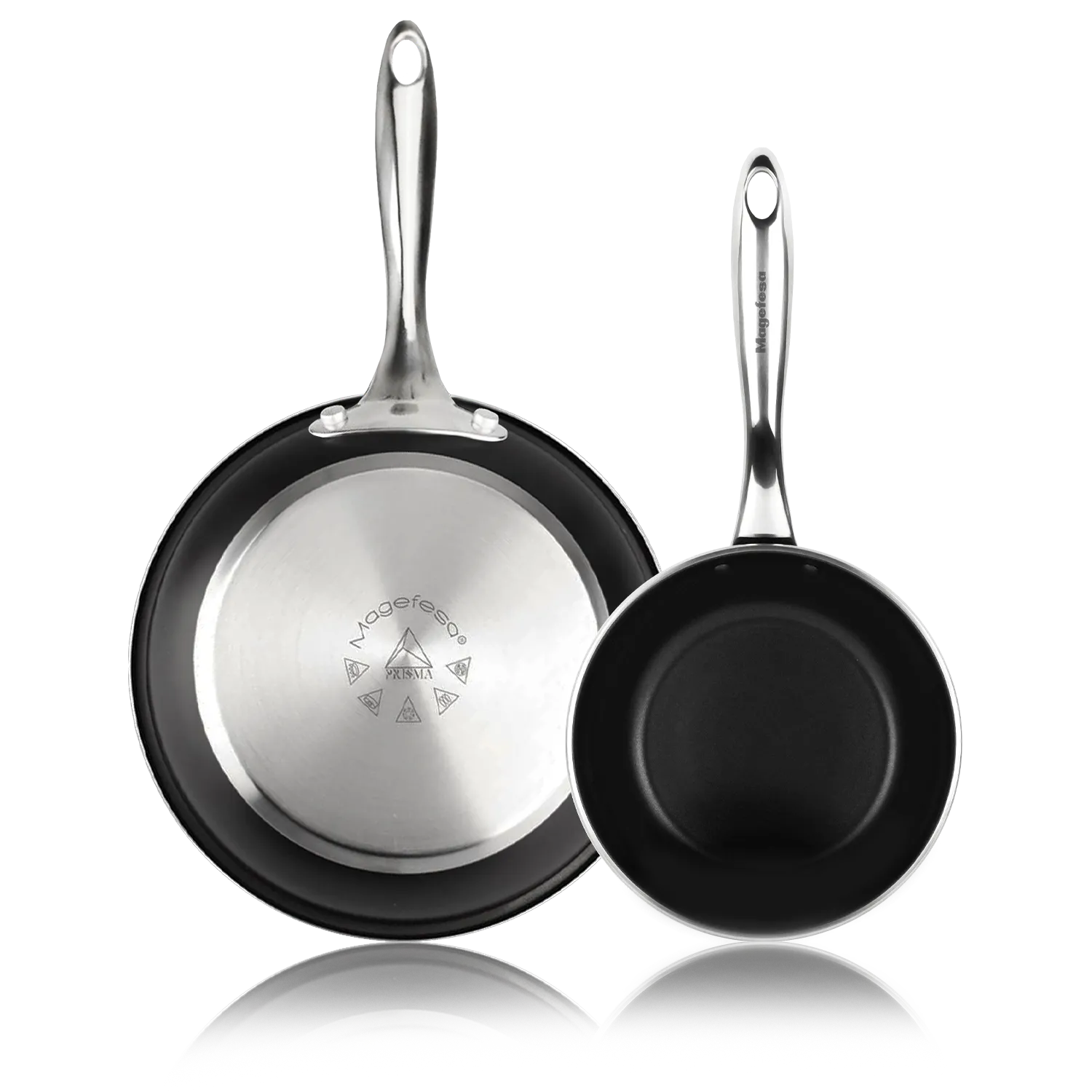 Magefesa Prisma – Set 2 Sartenes Negras 20+28cm, Acero Inoxidable 18/10, Antiadherente Tricapa, Libre de PFOA/PTFE, Todas las Cocinas, Inducción