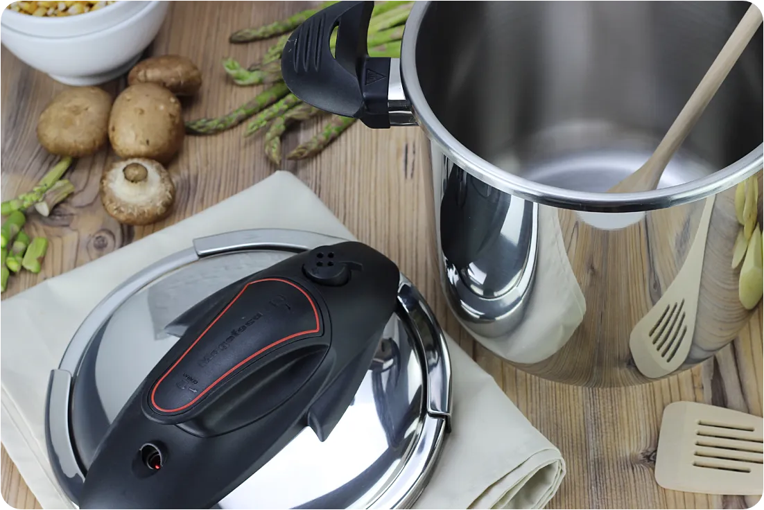Innovación: La MAGEFESA Prisma incorpora tecnología avanzada de cocción rápida que ajusta automáticamente la presión y el tiempo de cocción según los alimentos, asegurando resultados perfectos cada vez.